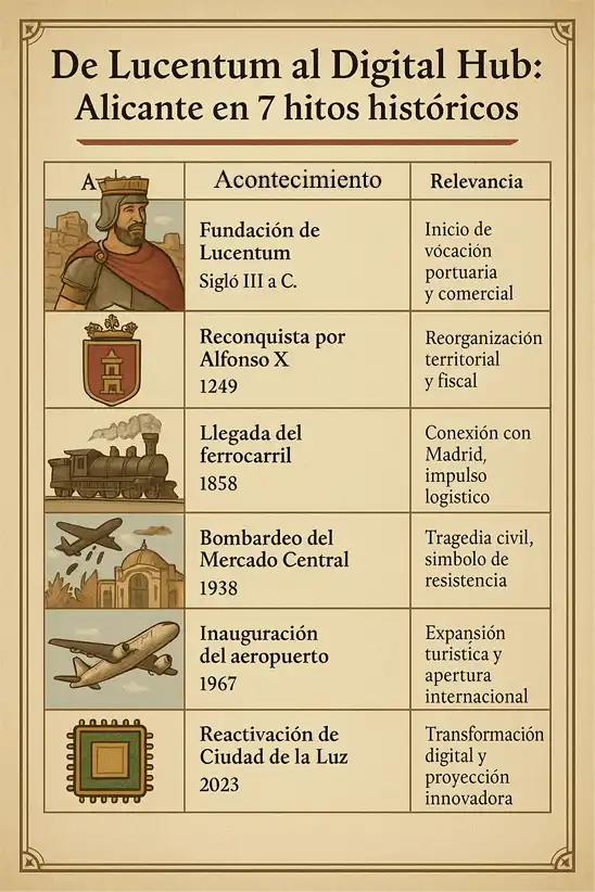 Quien piense que Alicante es únicamente un destino vacacional es porque no ha entendido la potencia de su legado histórico. Desde los tiempos de Lucentum hasta la reconquista, pasando por su edad dorada como puerto mercantil o su rol fundamental en la Guerra Civil, cada etapa ha dejado cicatrices y enseñanzas. Y eso, precisamente, es lo que convierte a la evolución histórica de Alicante en un manual práctico para cualquier emprendedor: cómo resistir, adaptarse y capitalizar su ventaja competitiva.